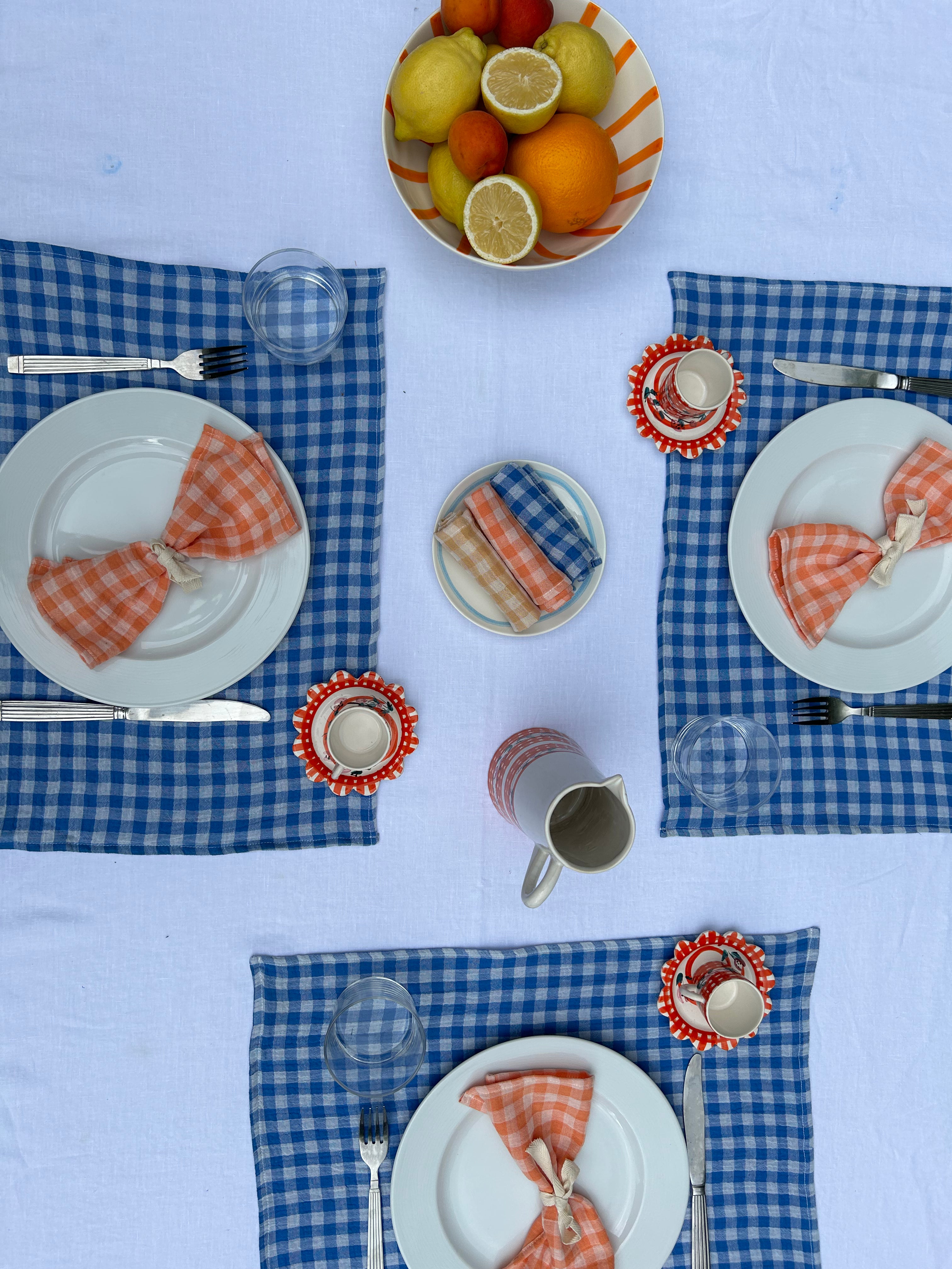 Coffret de 4 Serviettes de Table en Double Gaze de Coton – Vichy Azur, violet, clémentine et vert de gris– 40x40cm