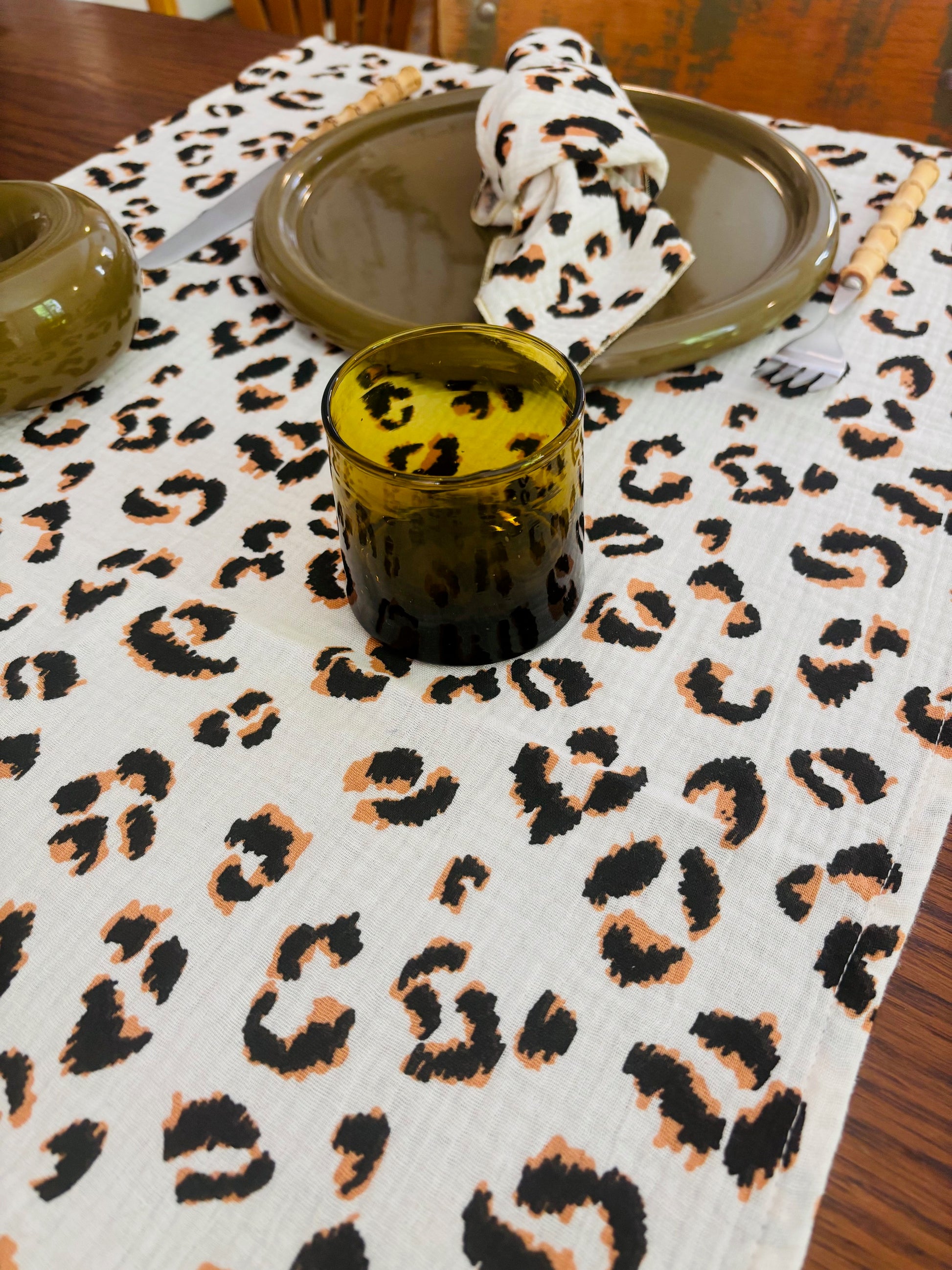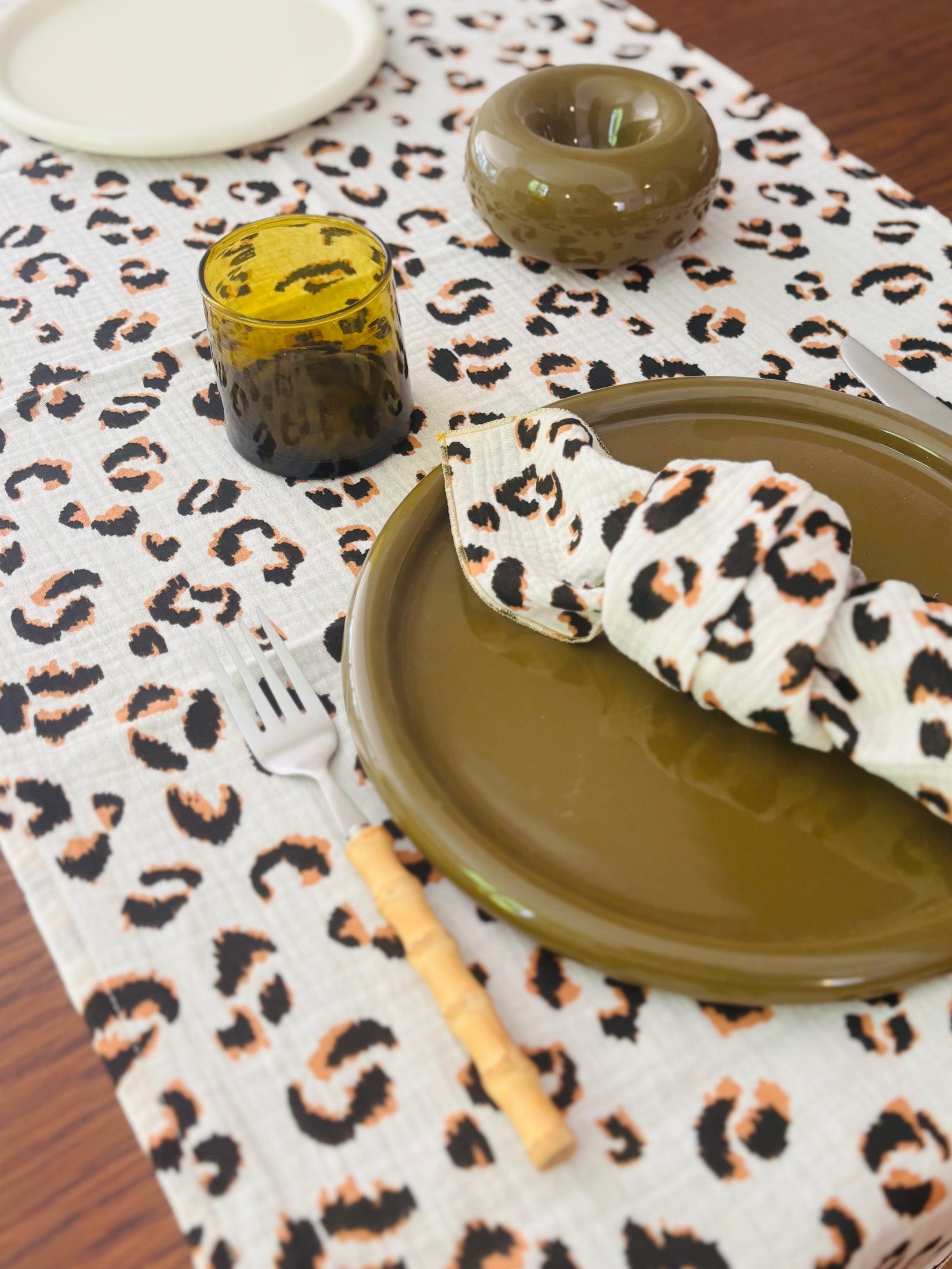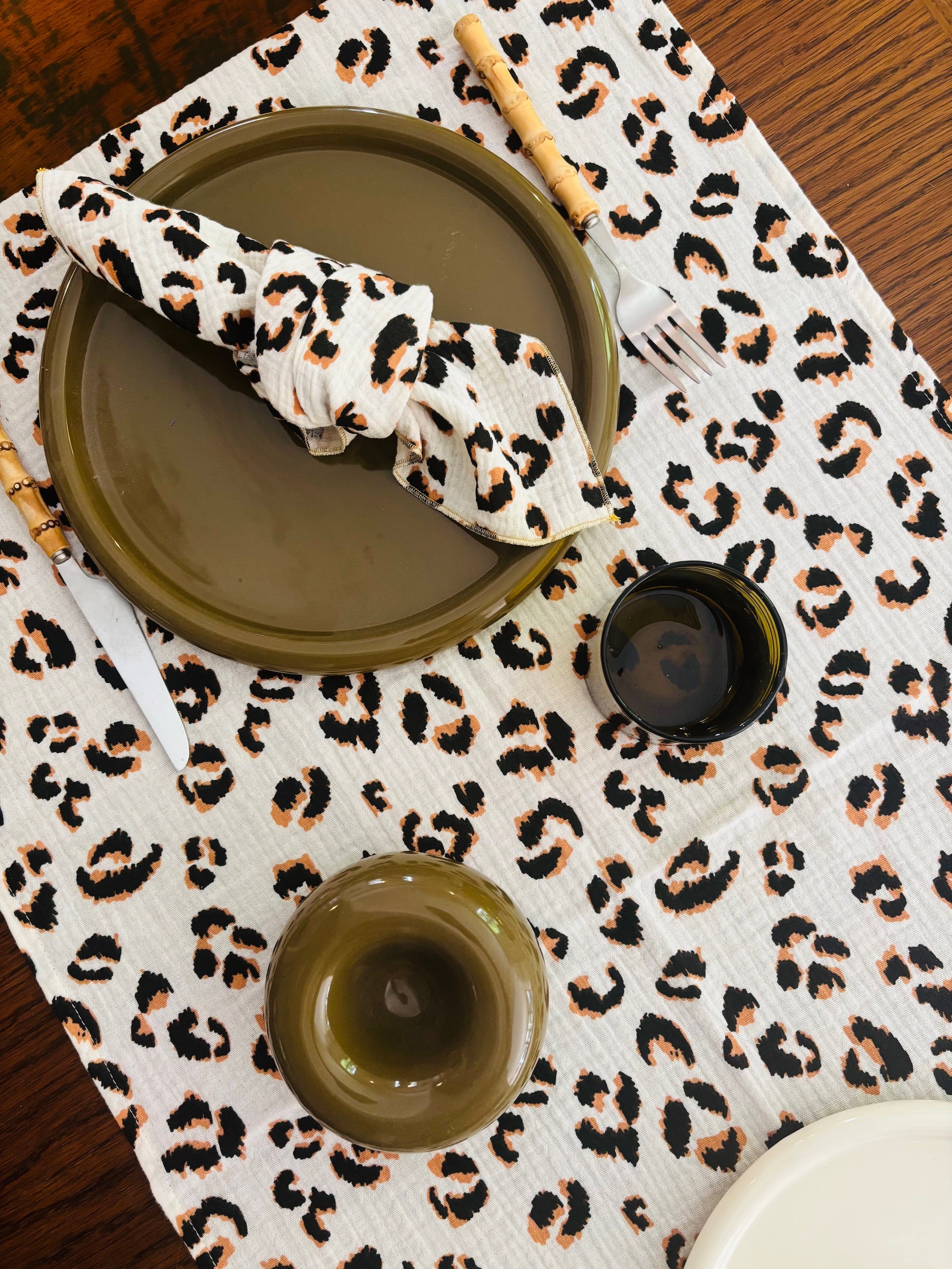 Chemin de table Léopard Écru – Gaze de coton – 50x150cm