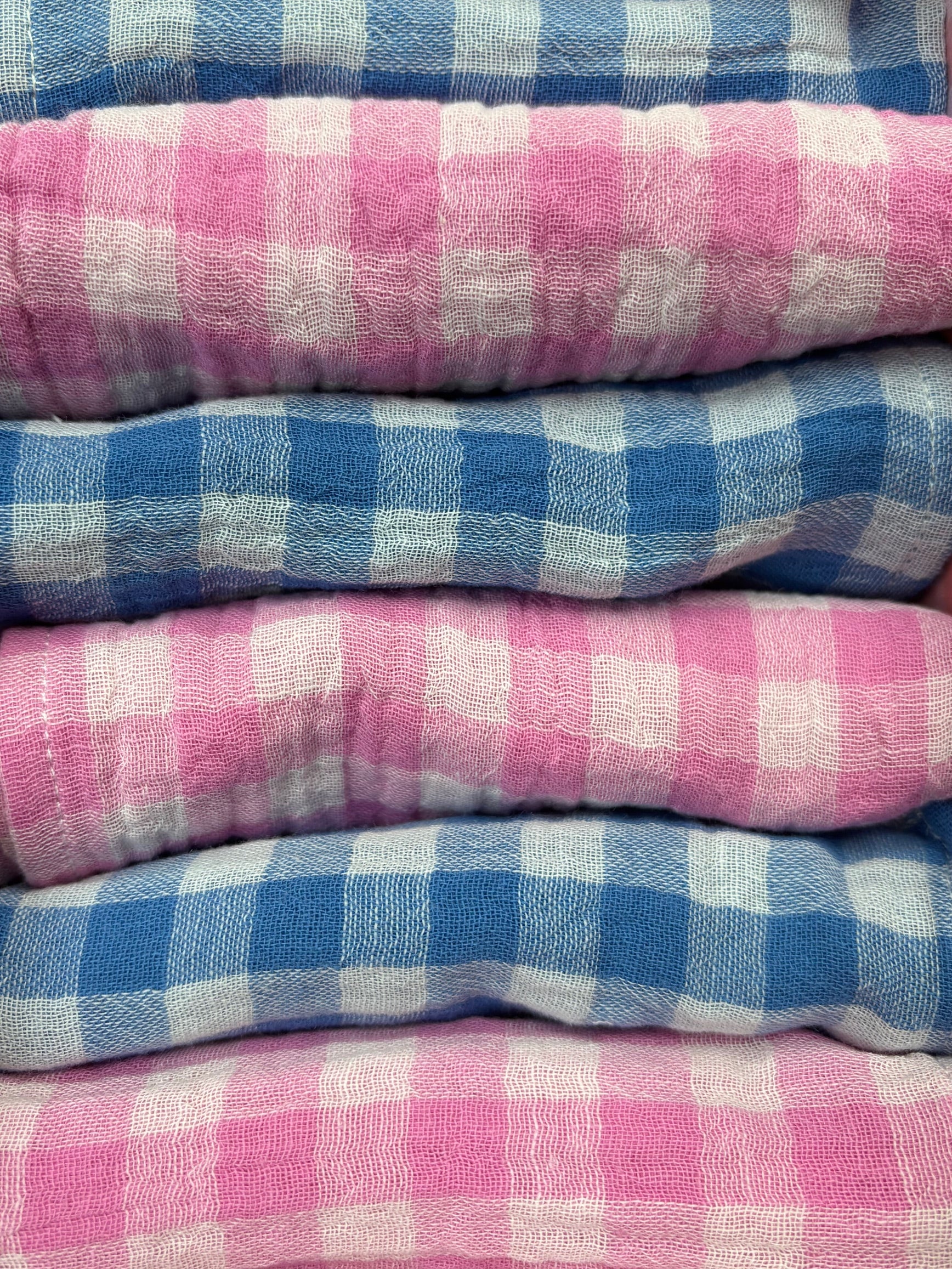 Coffret de 6 serviettes de table Petite 23x23 – Gaze de coton vichy rose bonbon et bleu azur