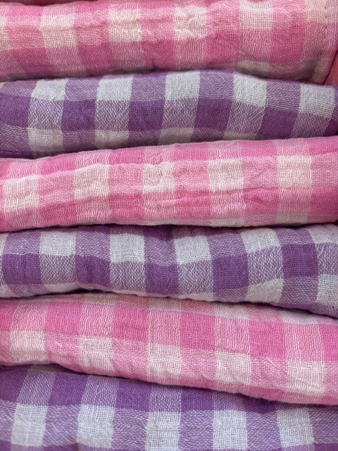 Coffret de 6 serviettes de table Petite 23x23 – Gaze de coton vichy violet et vichy rose bonbon