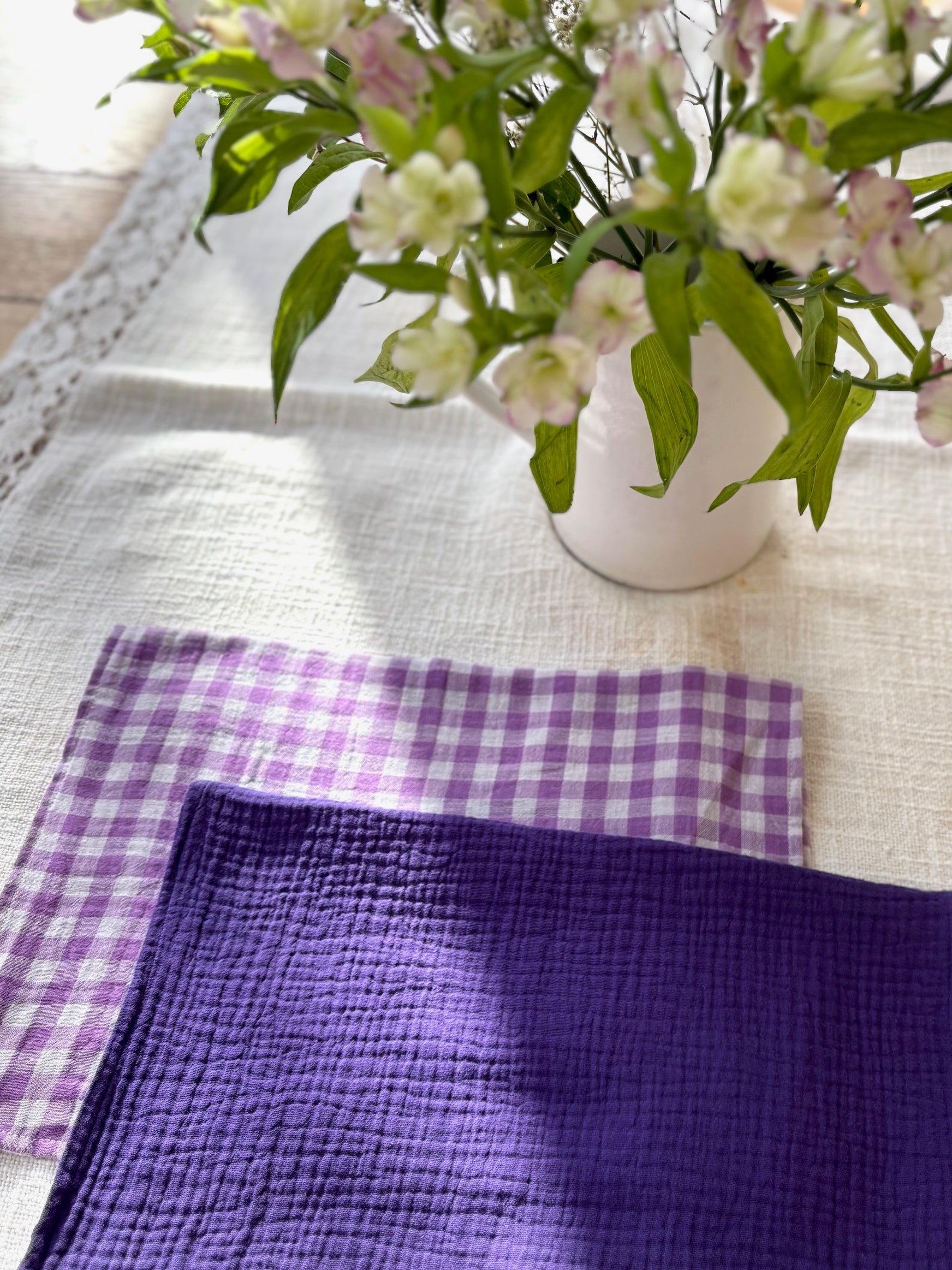Ensemble de 2 essuie-mains ultra doux, en gaze de coton, vichy et uni vert de gris. Ils seront parfaits dans votre cuisine ou salle de bain.
