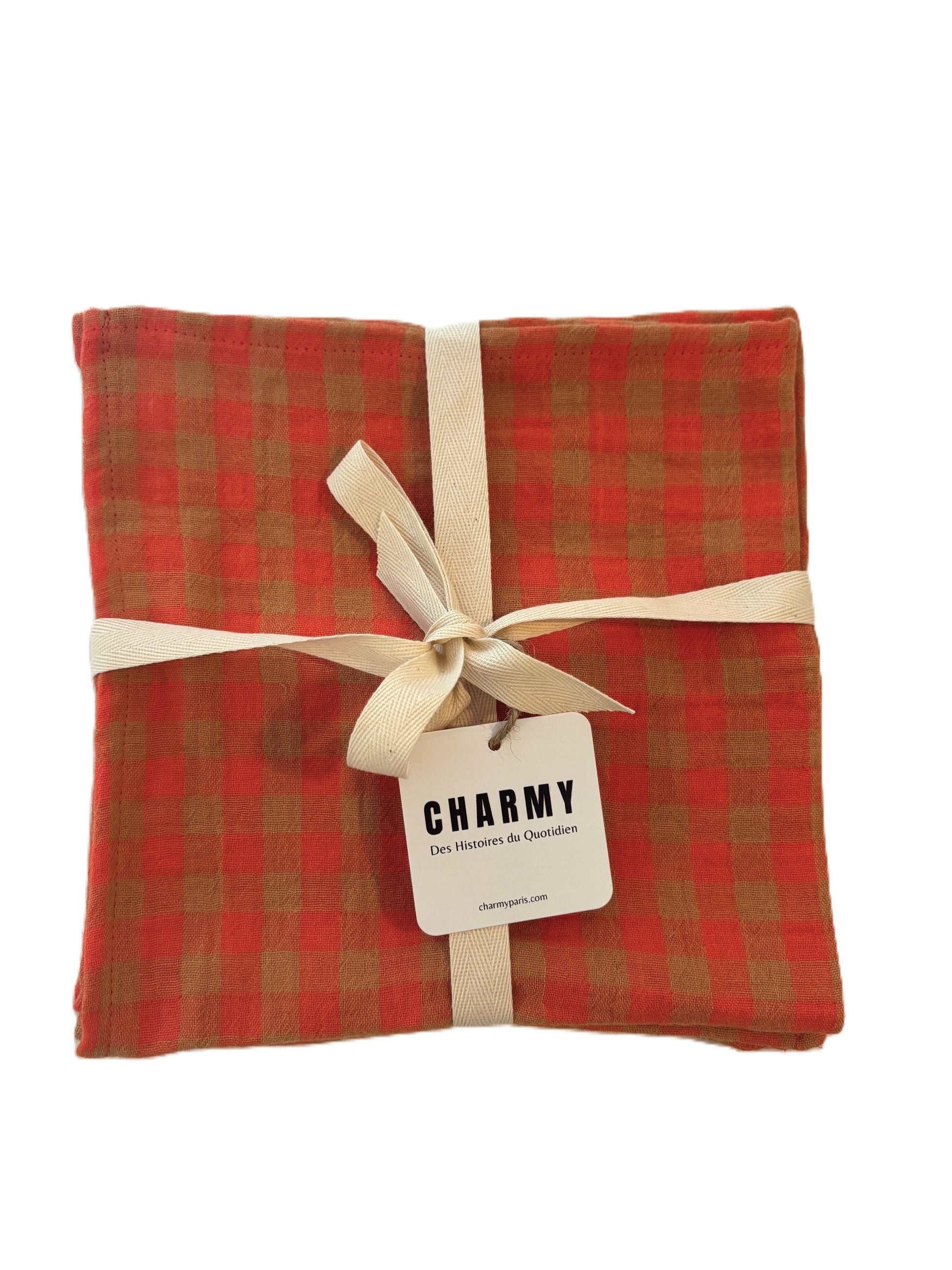 2 Serviettes de Table en Double Gaze de Coton – Vichy Tangerine & Caramel – 40x40 cm