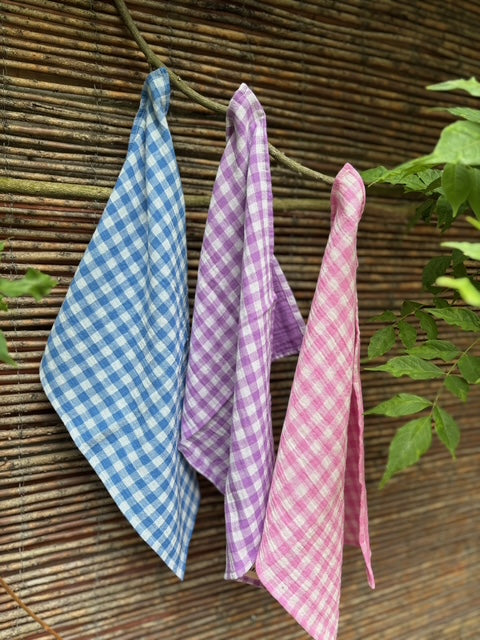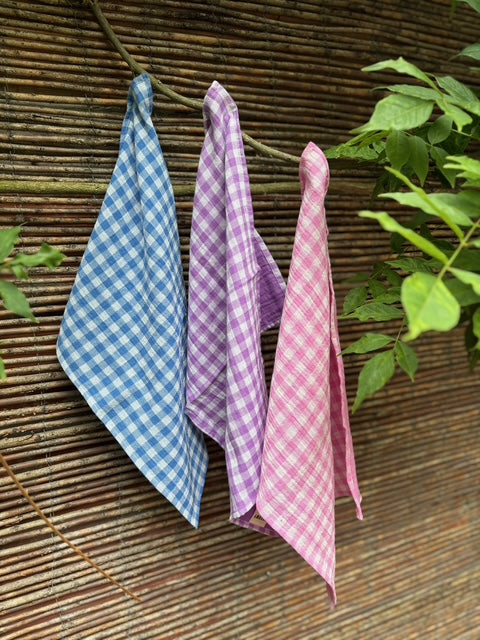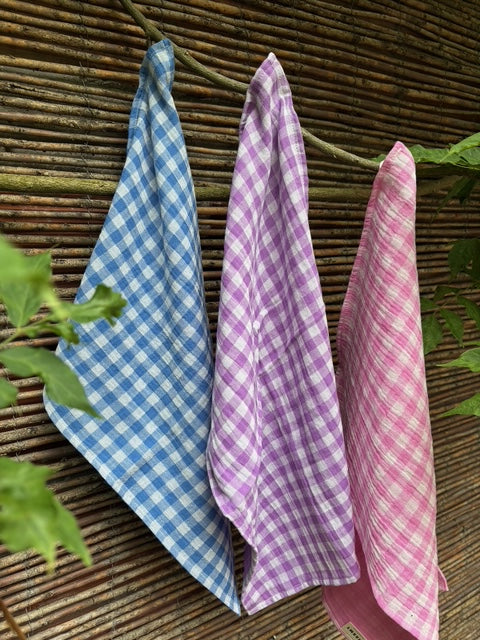 3 essuie-mains vichy bleu, rose et violet fabriqués en France