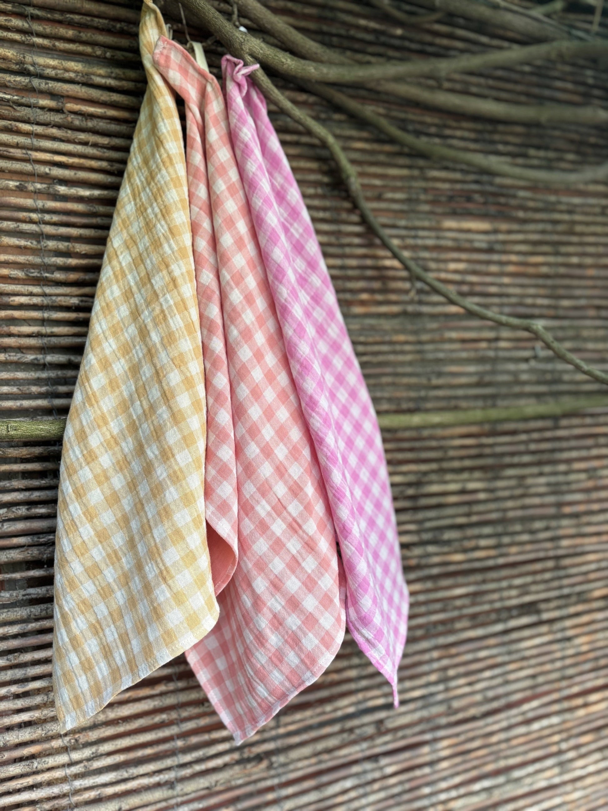 3 essuie-mains coloris vichy blé, rose bonbon et barbapapa