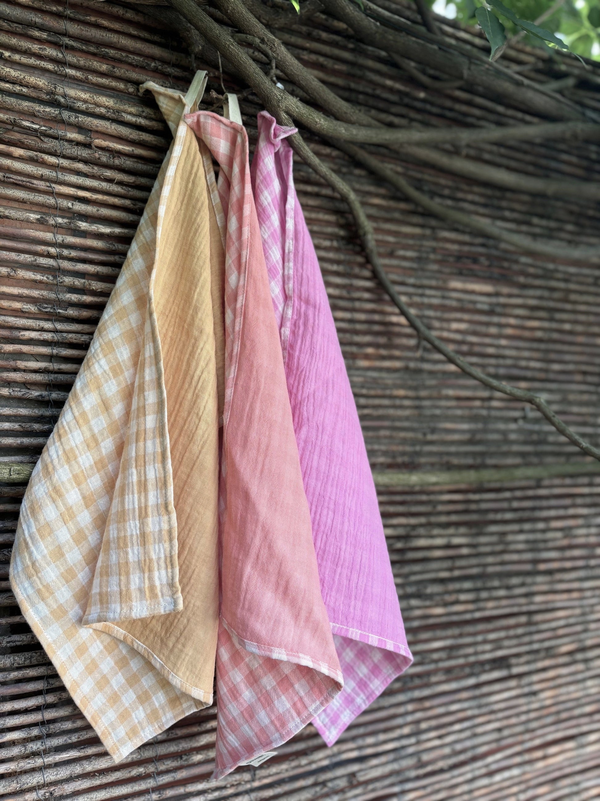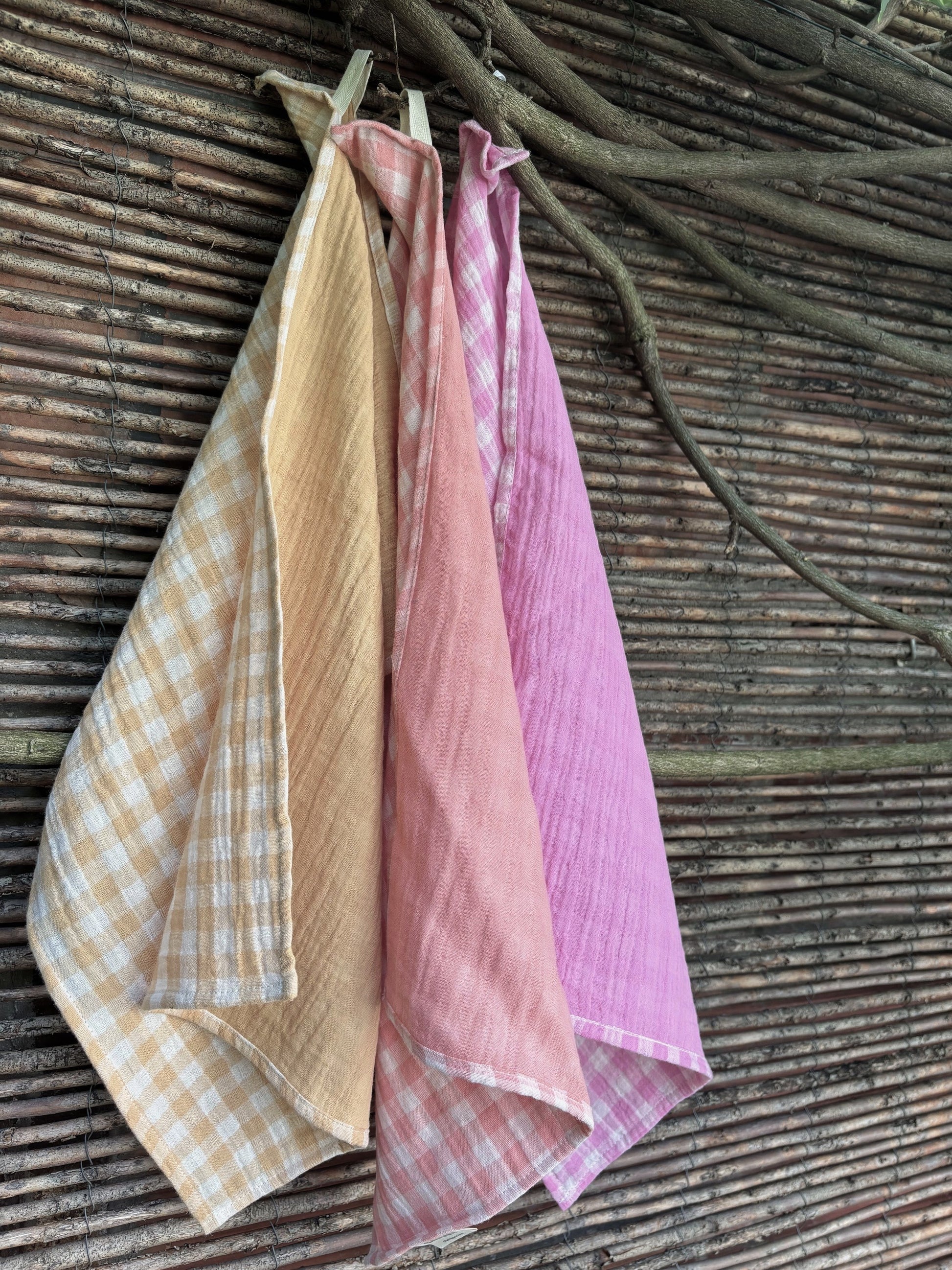 3 essuie-mains 35x50 - vichy blé, rose bonbon et barbapapa - fabriqués en France