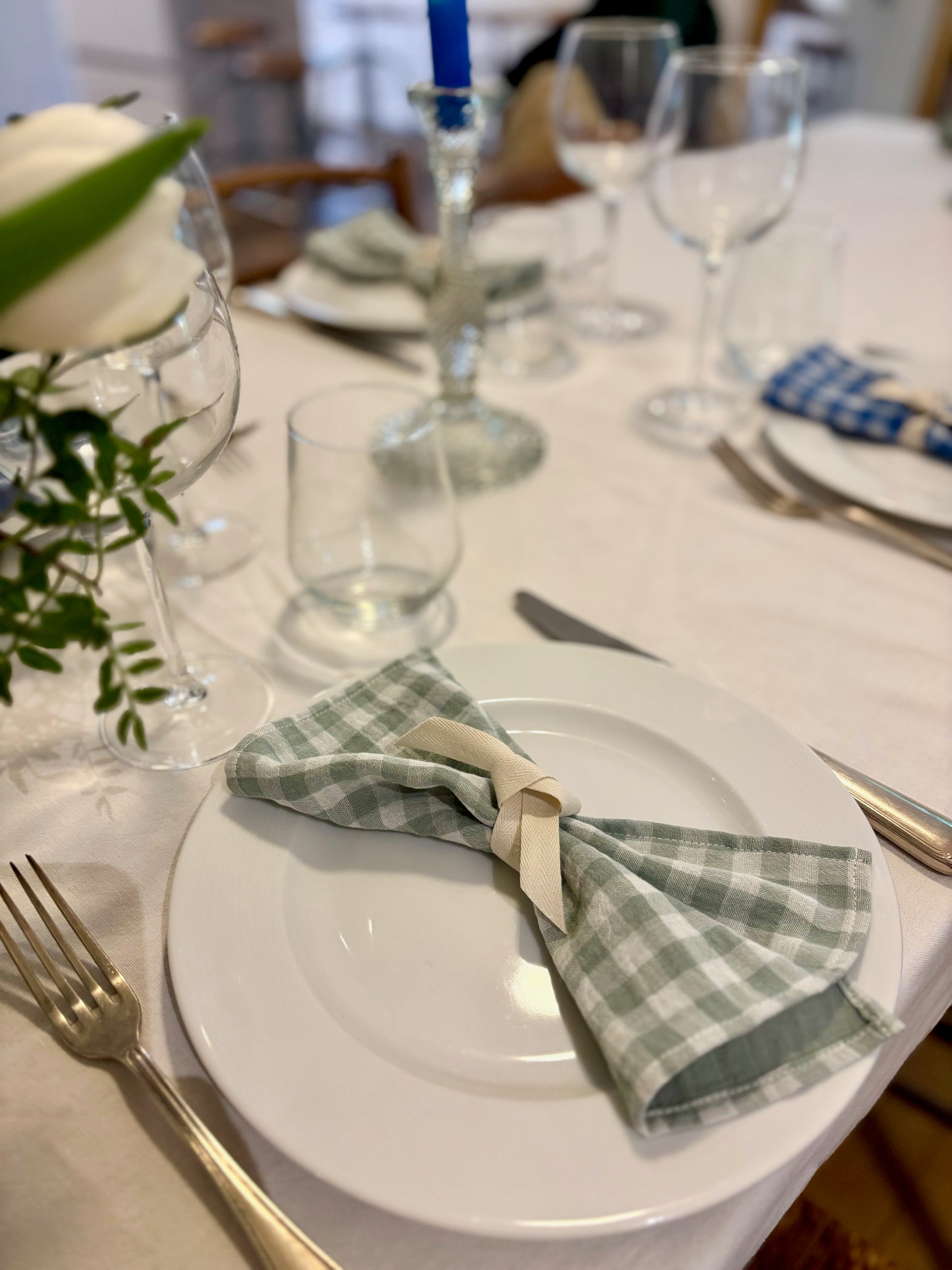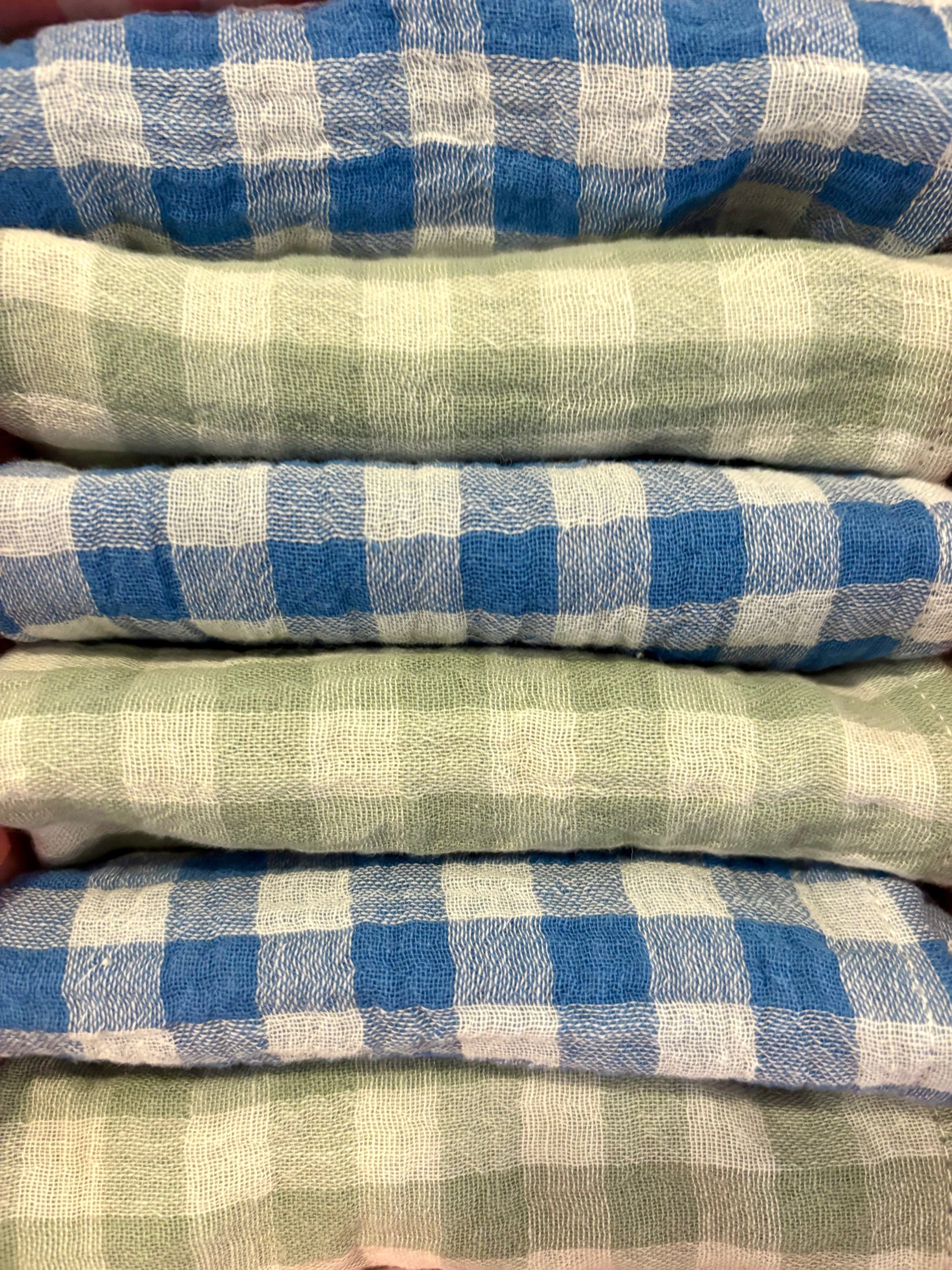 Coffret 6 serviettes de table en tissu vichy bleu et vert
