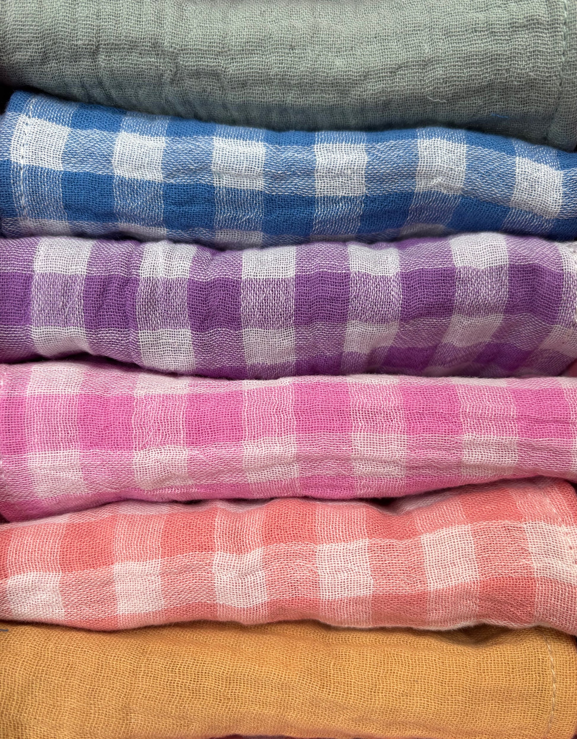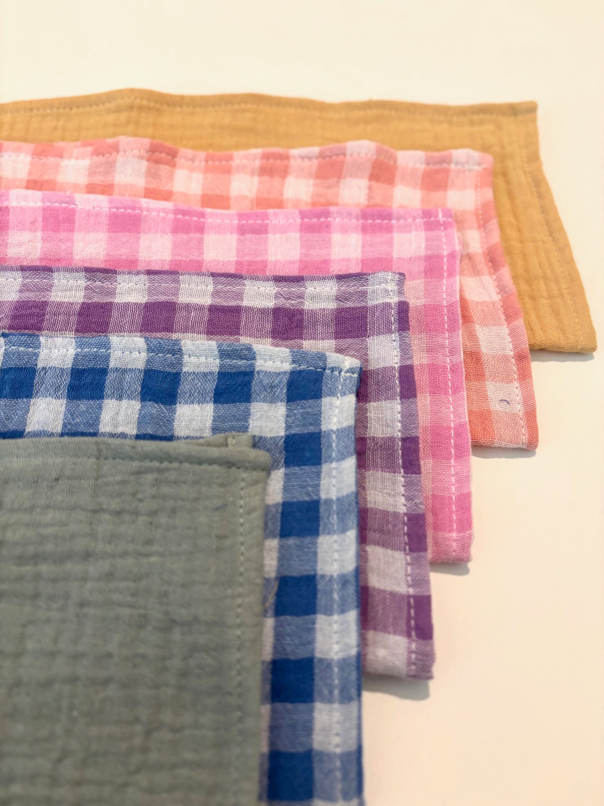 Coffret de 6 serviettes cocktail - Gaze de coton - Motif vichy et uni multicolore - 23x23cm