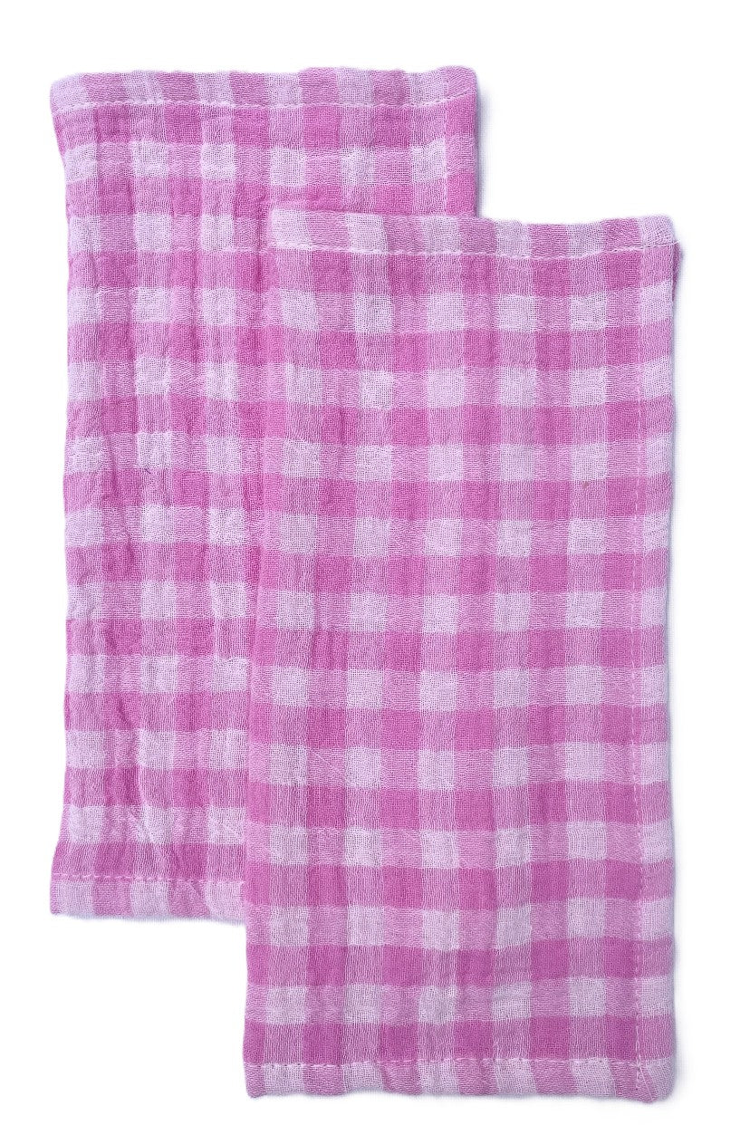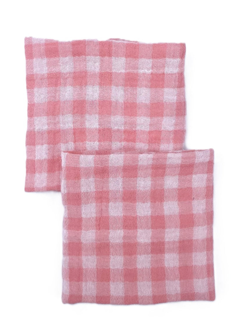 2 serviettes vichy rose bonbon