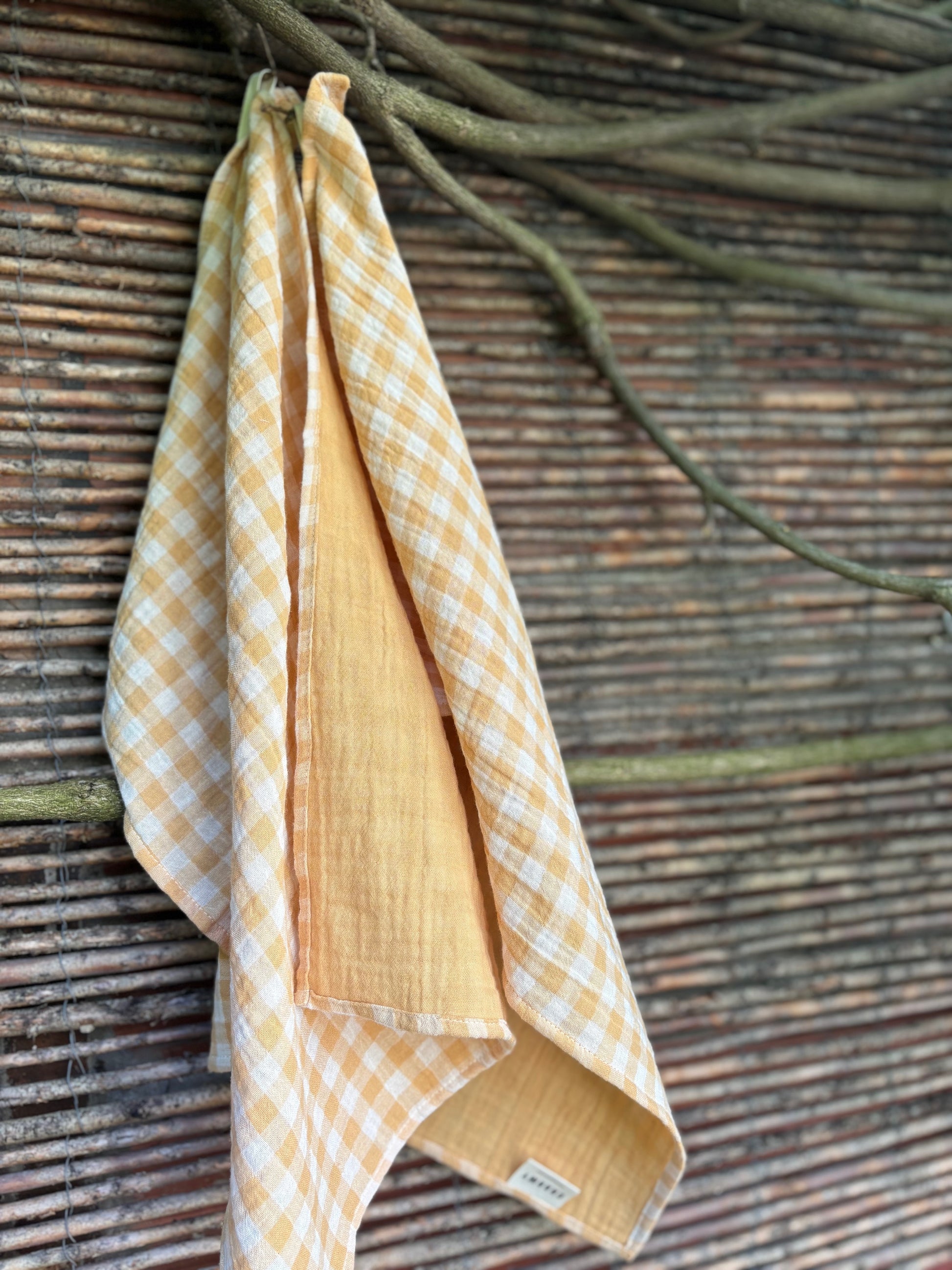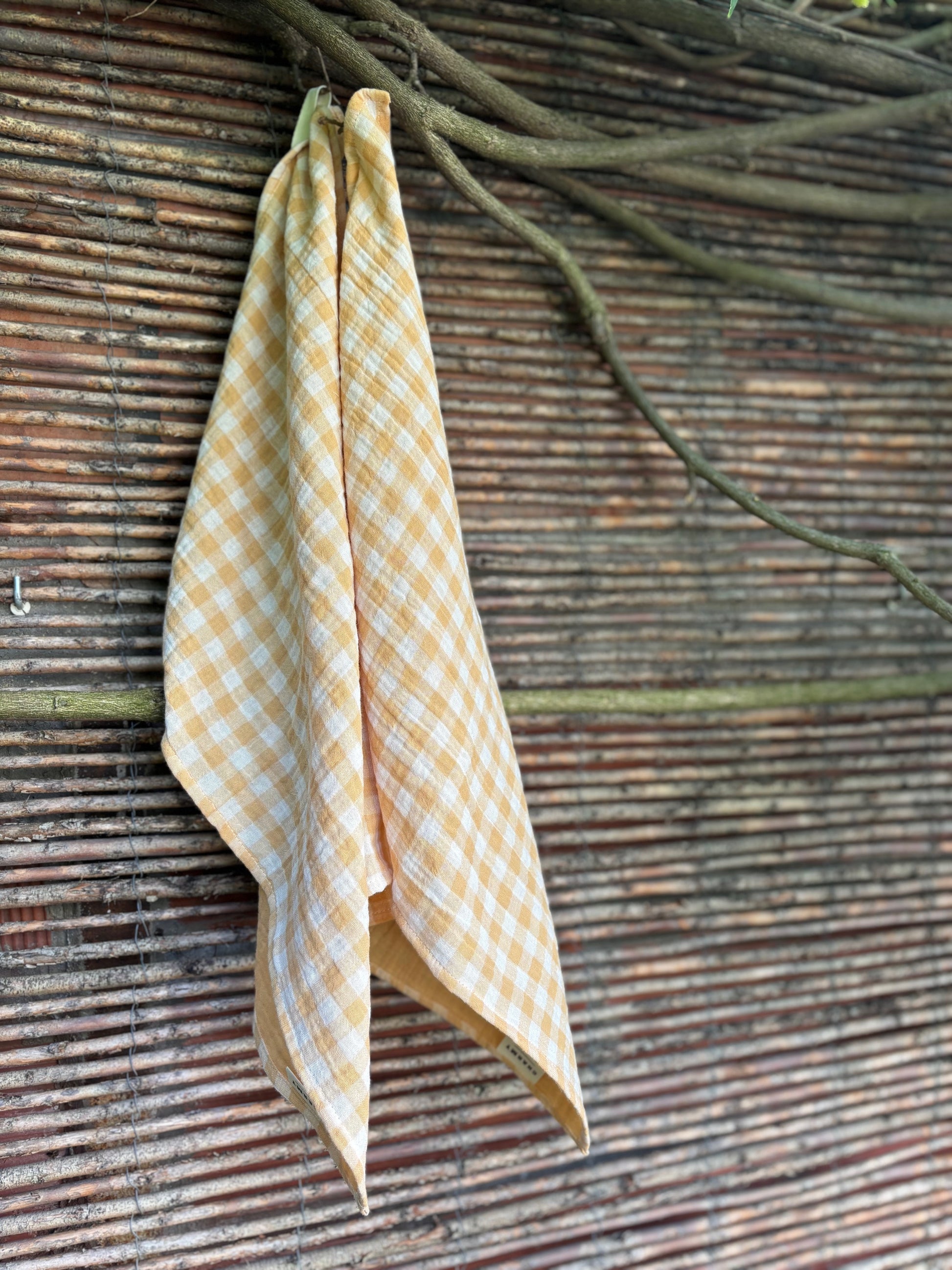 2 essuie-mains 35x50 - vichy jaune blé - gaze de coton - fabriqués en France